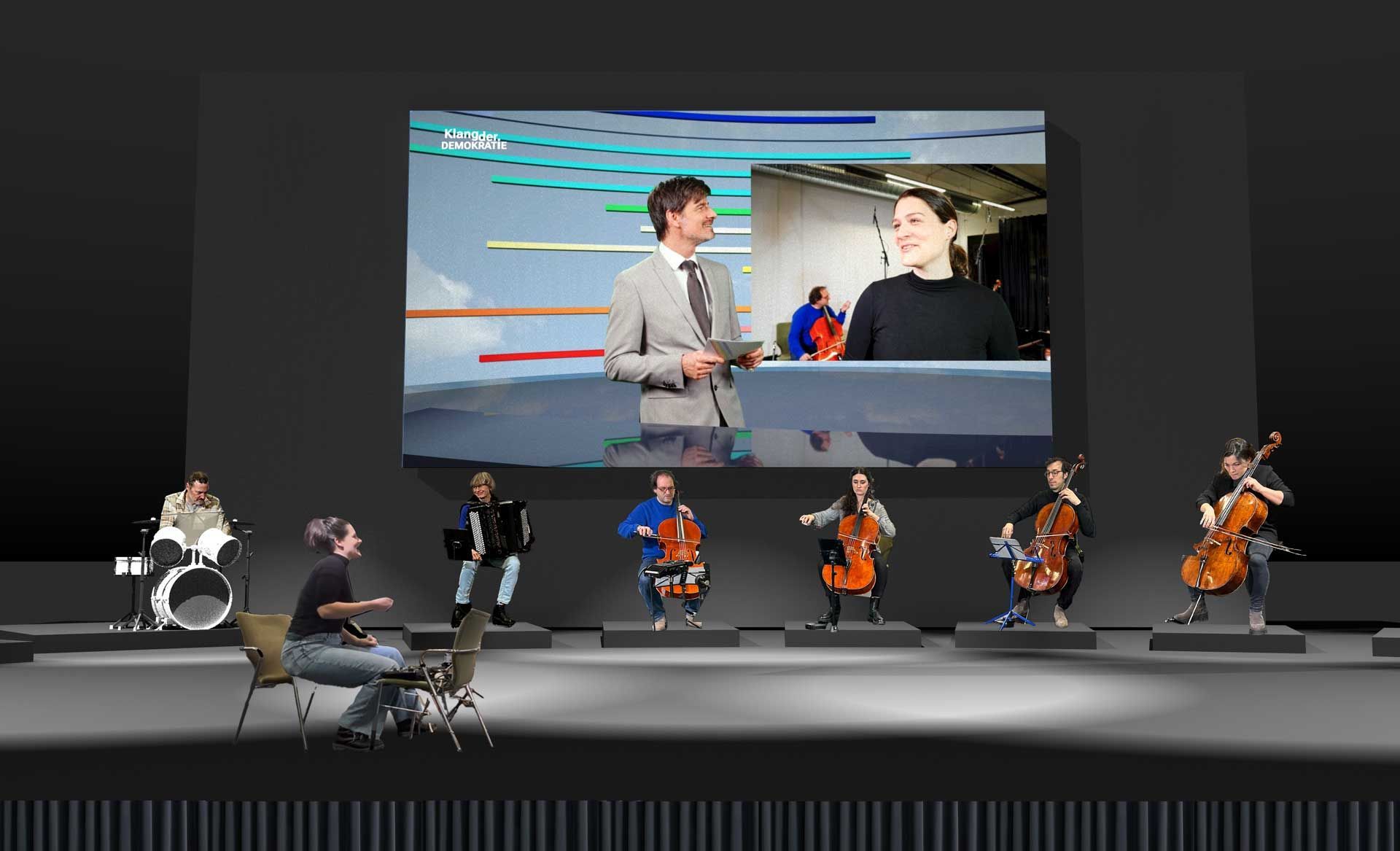 Was ist der Wert - was ist die Bedeutung von Demokratie in Geschichte und Gegenwart? In einer multimedialen Inszenierung suchen 16 Künstler*innen nach dem Klang der Demokratie. Die interaktive Performance aus Musik, Sprache, Licht- und Filminstallationen führt mit einer virtuellen Reise an 16 bedeutende Orte, zu Ereignissen und Persönlichkeiten der Demokratiegeschichte Deutschlands.